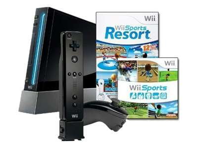 Nintendo Wii Black Console with Wii Sports and Wii Sports Resort